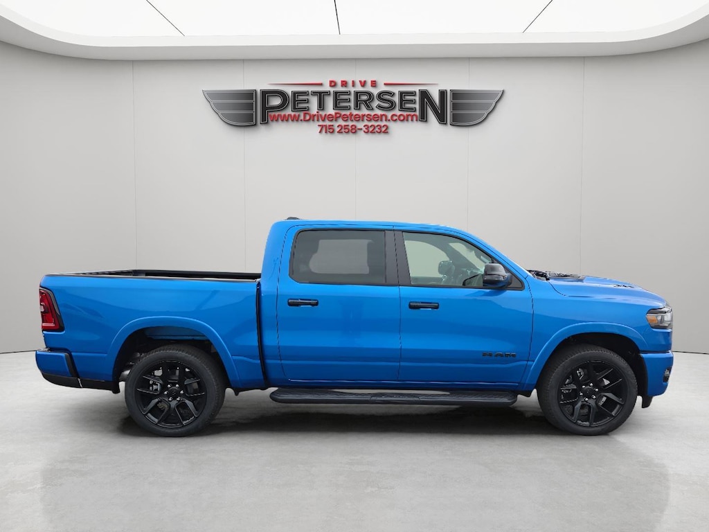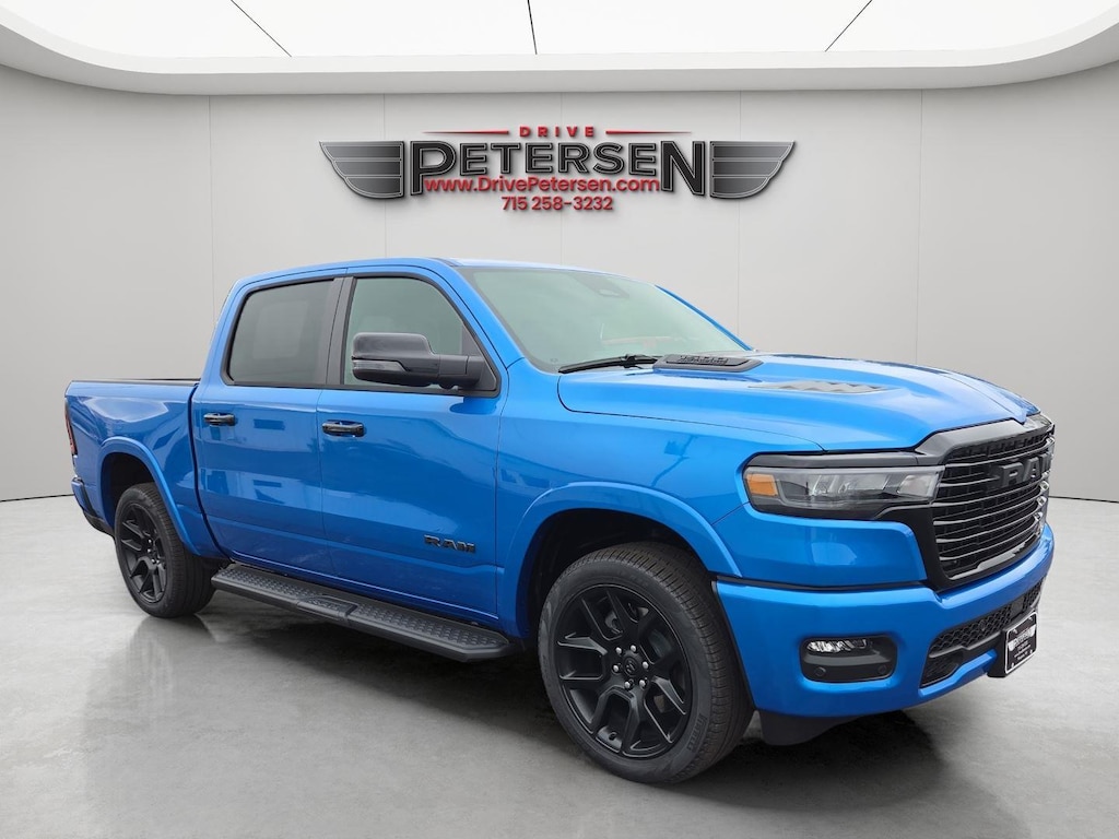 This 2026 Ram 1500 Laramie, has a Hydro Blue Pearlcoat exterior and a Black interior. Please call us at 715-227-6694 and reference stock number T26011 for further details.
