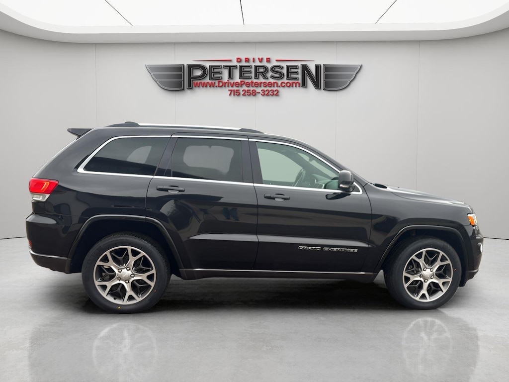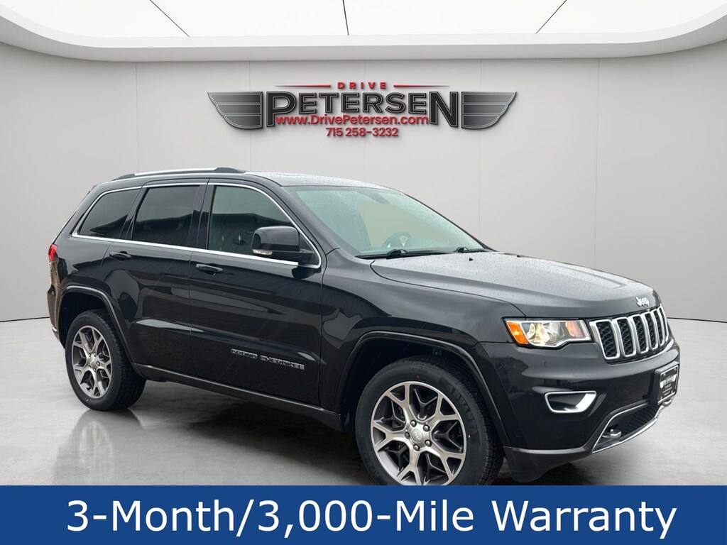 This 2018 Jeep Grand Cherokee Sterling Edition with 47,163 miles, has a Diamond Black Crystal Pearlcoat exterior and a Black interior. Please call us at 715-227-6694 and reference stock number T25309A for further details. CLEAN Carfax! One Owner!